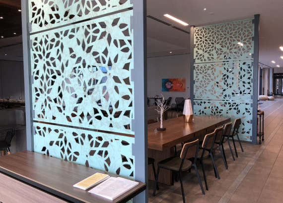 Dividing public spaces in an intimate, interesting, and artistic way always presents a challenge and opportunity for designers to incorporate an aesthetic and functional element. Critical for providing both a visual break and a physical delineation, pattern can have a very large impact on how that is accomplished.